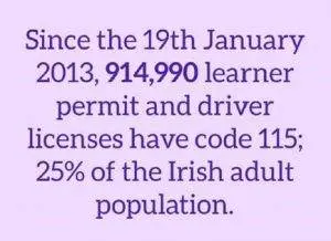 We now have 915,000 people who have chosen to allow Code 115 to be printed on their drivers licence. In four years’ time everyone will have the new format licence. If the current trend continues over 1.5 million people or 41% of the adult population will have Code 115 on their licences.